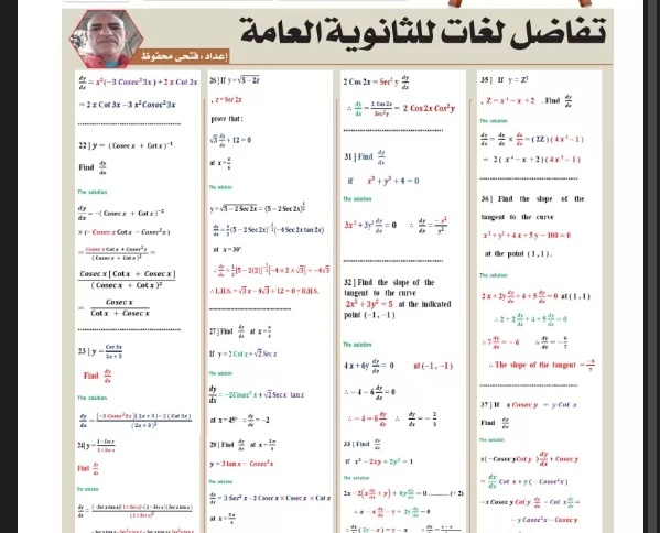 أهم المسائل في التفاضل لغات لطلاب الثانوية العامة