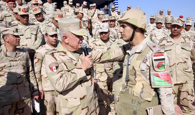 الفريق أول محمد زكى يلتقى بمقاتلى الجيش الثانى الميدانى ويشيد بدورهم الوطنى فى قتال العناصر الإرهابية