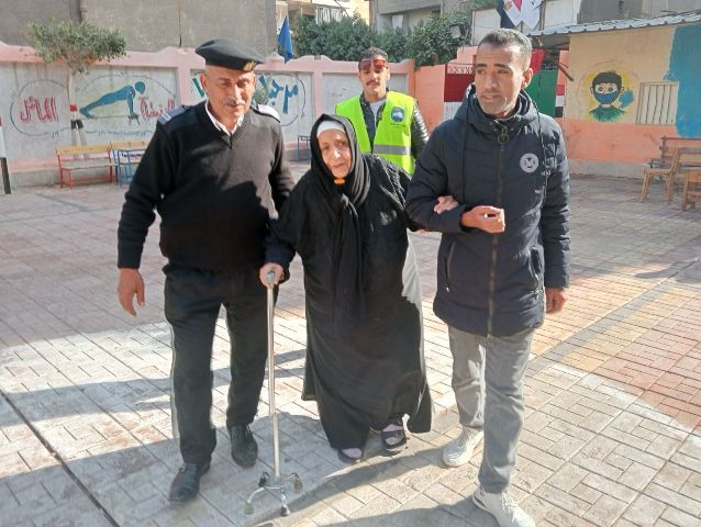 رجال الشرطة يساعدون الحالات الخاصة فى الانتخابات بحدائق القبة