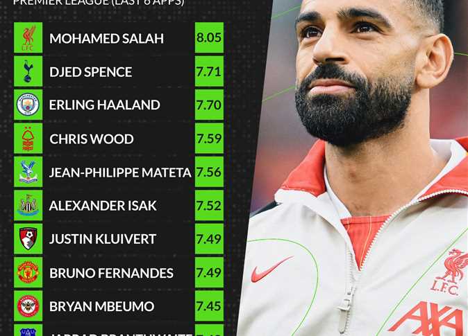أفضل 10 لاعبين في الدوري الإنجليزي آخر 10 جولات.. صلاح في الصدارة