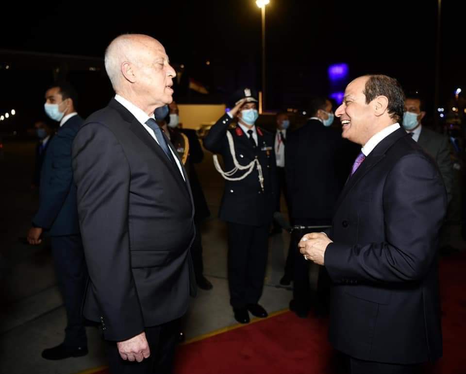 الرئيس يودع ضيفه الرئيس التونسي قيس سعيد بمطار القاهرة بعد ختام زيارته إلى مصر