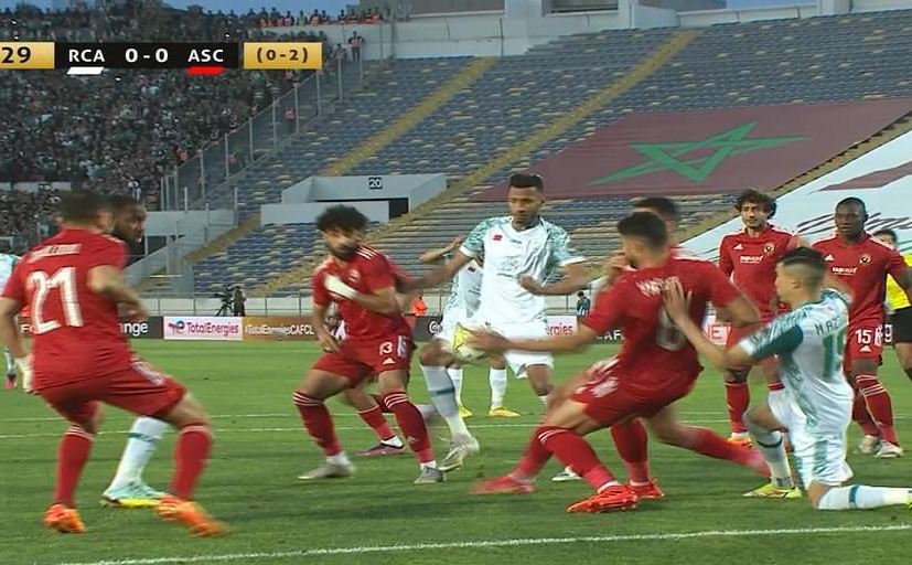 ركلة جزاء ضائعة من الرجاء المغربى.. العارضة تنقذ الاهلى شاهد