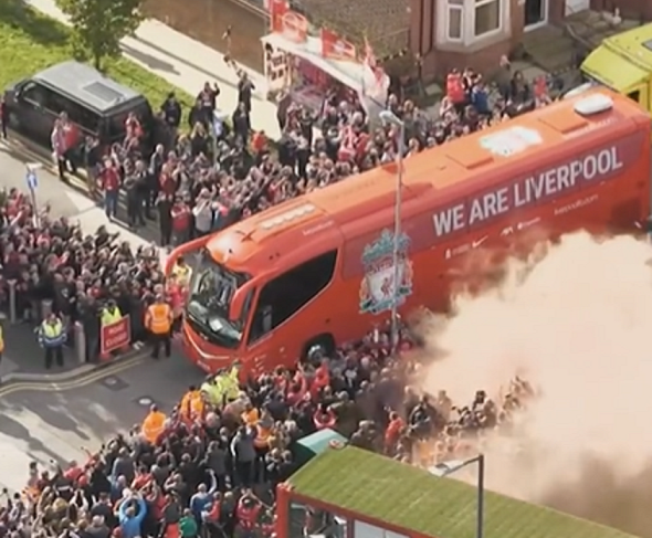 شاهد لحظة استقبال جماهير ليفربول حافل الريدز قبل مواجهة السيتى