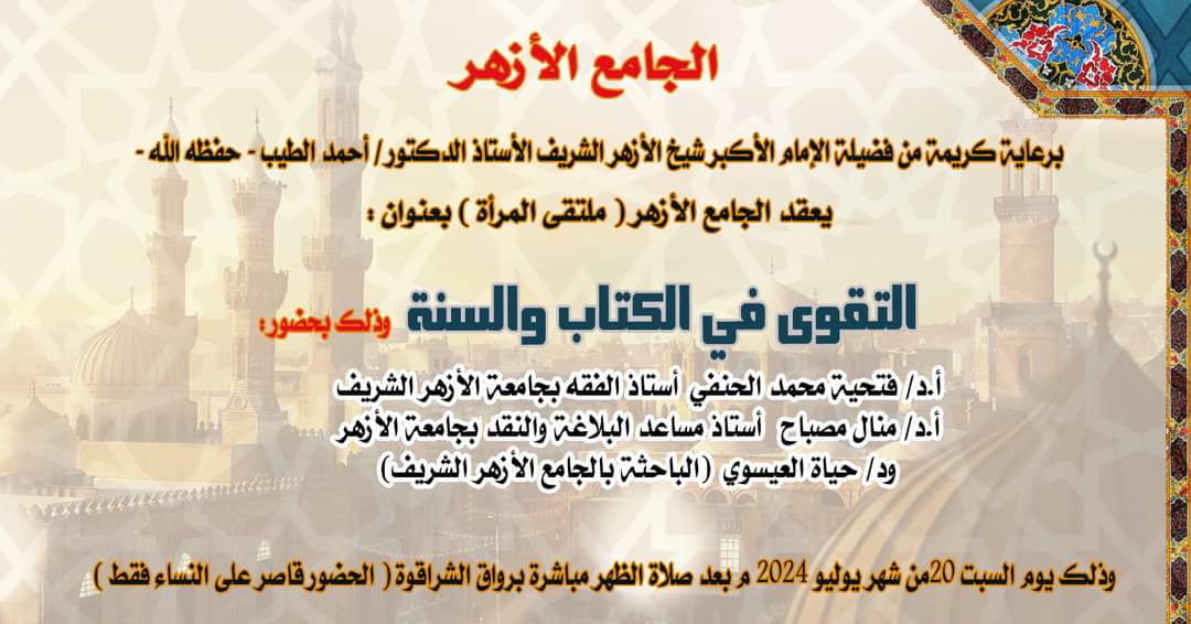 "وتزودوا فإن خير الزاد التقوى" بالجامع الأزهر السبت المقبل