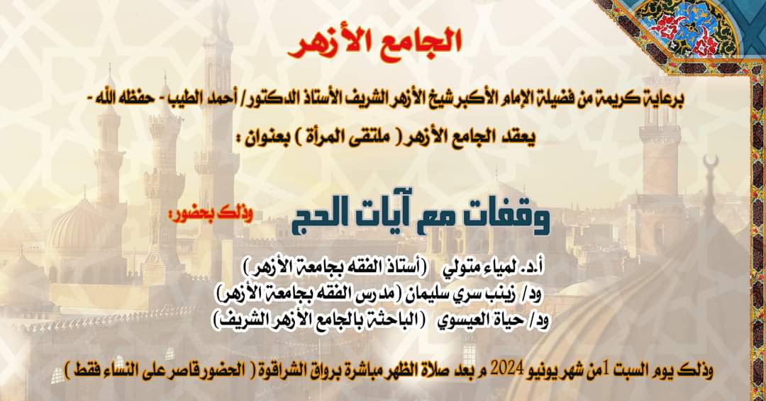 "الحج أشهر معلومات" في ملتقى المرأة بالجامع الأزهر السبت المقبل