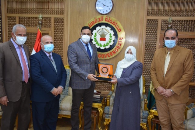 محافظ الدقهلية يكرم رئيسة لجنة امتحانات الشهادة الإعدادية فى السنبلاوين.. بالصور