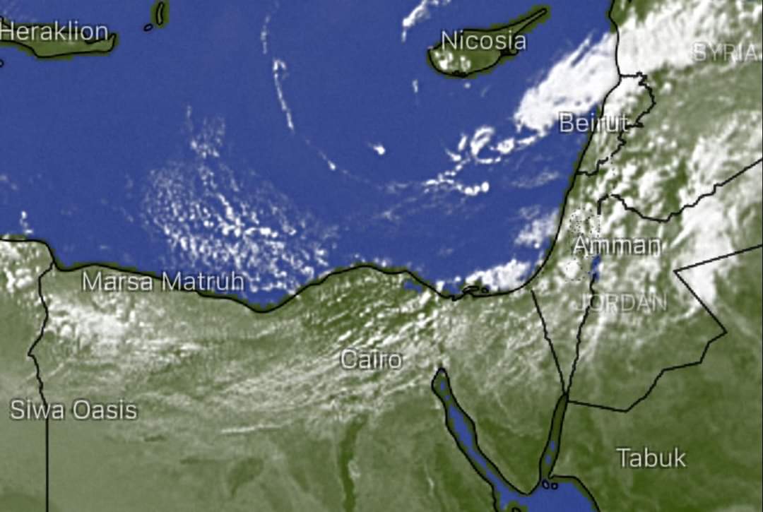 الأقمار الصناعية تشير الى سحب ممطرة على السواحل الشمالية وسيناء