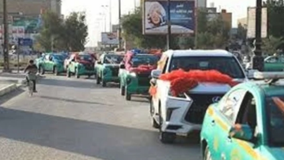 شاهد .. الزواج في زمن الكورونا .. الشرطة العراقية تزف عروسين خلال حظر التجول