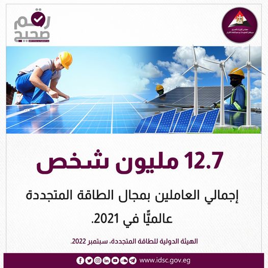 12.7 مليون شخص إجمالي العاملين في مجال الطاقة المتجددة خلال 2021