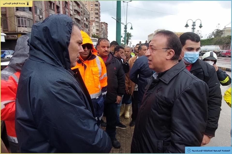 محافظ الإسكندرية يتابع أعمال تصريف تراكمات مياه الأمطار بحى العجمى