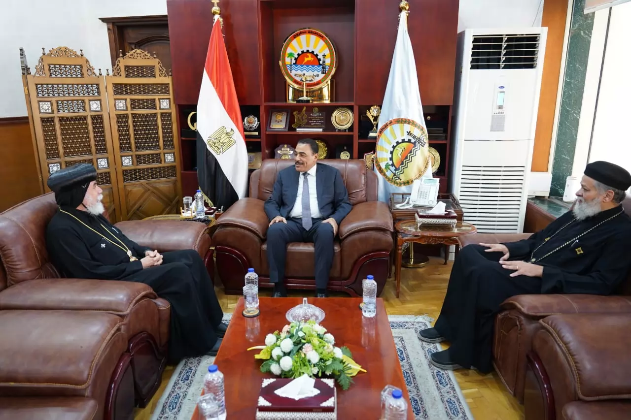 محافظ مطروح ييتقبل الأنبا كاراس أسقف مطروح والخمس مدن الغربية