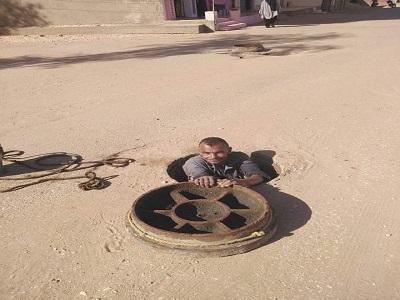 عمال الصرف يشكون عدم توافر بدلة الغطس والعدوى بغرف التفتيش بالوادى الجديد.صور