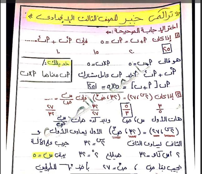 تحميل تراكمي الرياضيات للصف الثالث الإعدادى الفصل الدراسى الأول