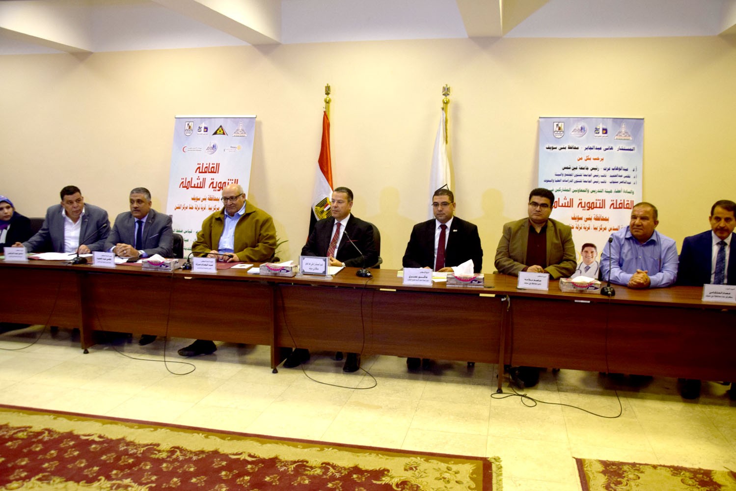 محافظ بني سويف و رئيس جامعة عين شمس يفتتحان فعاليات القافلة التنموية الشاملة