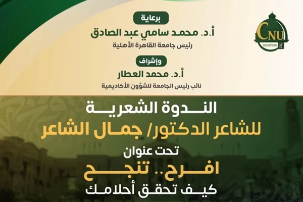 جمال الشاعر في ندوة «افرح.. تنجح» بجامعة القاهرة الأهلية