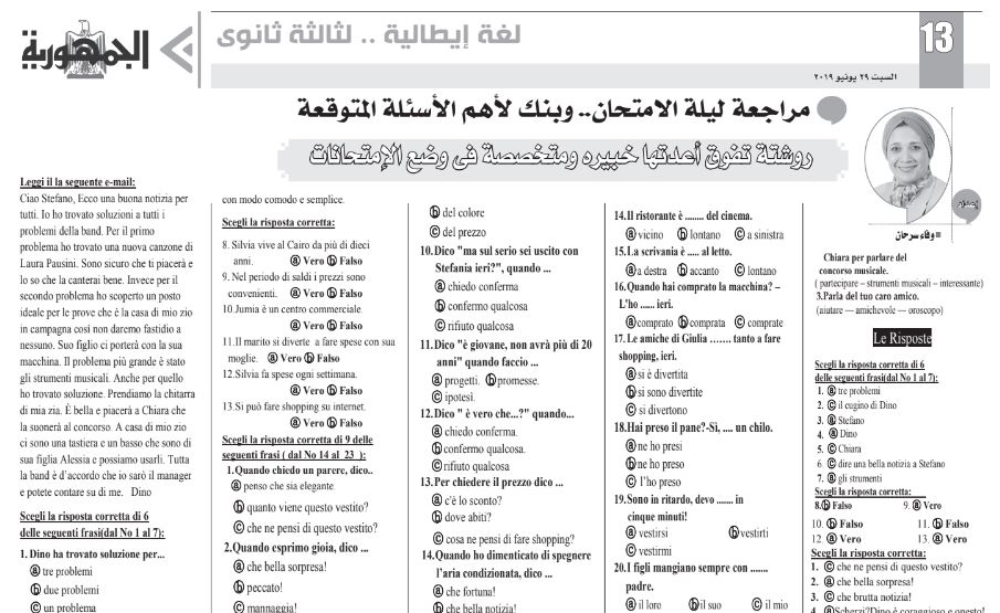 روشتة تفوق في امتحان اللغة الإيطالية للثانوية العامة 2019