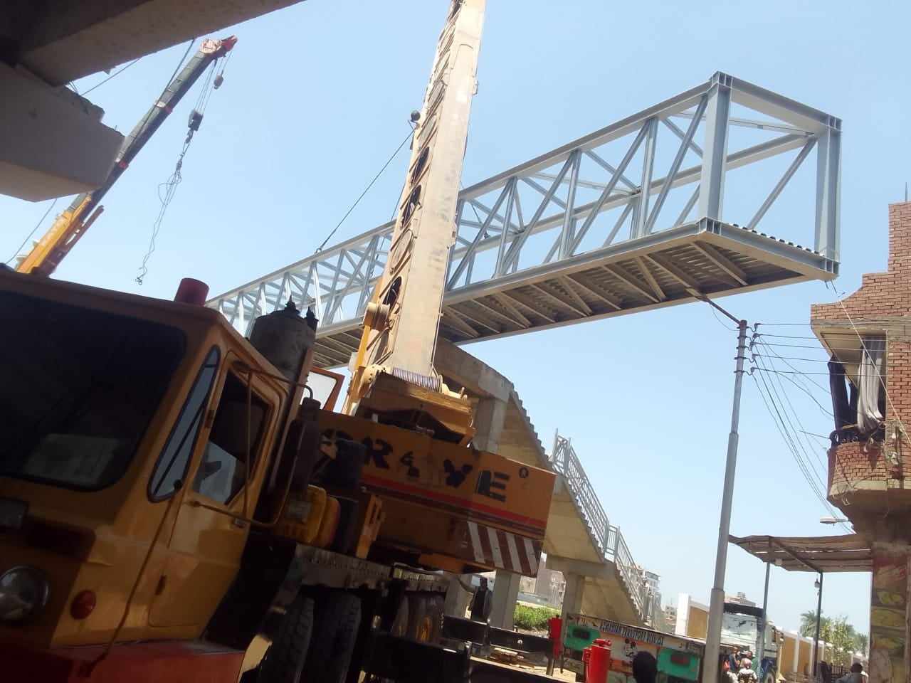 بدء تركيب الكمرات الحديدية على كوبرى مشاة الملكية البحرية بملوى