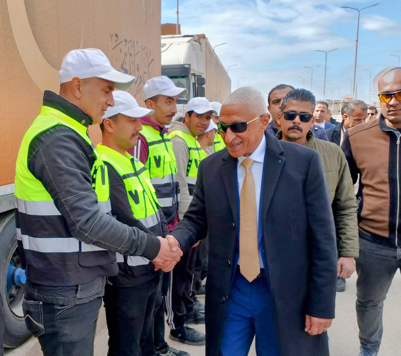 محافظ شمال سيناء يشهد اصطفاف شاحنات المواد الغذائية