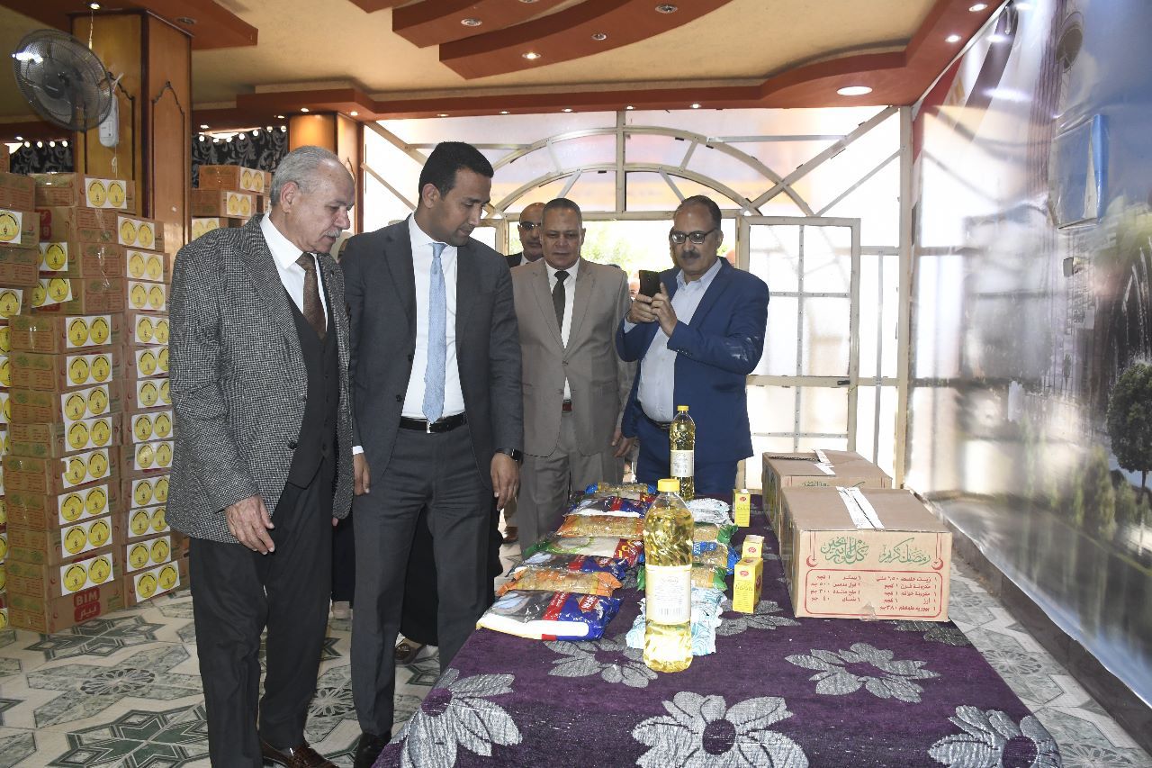 محافظ الفيوم يتفقد قافلة المواد الغذائية المقدمة