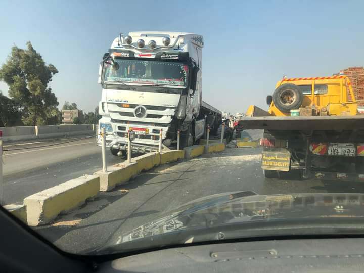 التريلا دهست الميكروباص.. وعطلت الطريق الإقليمي نزلة بنها وقويسنا