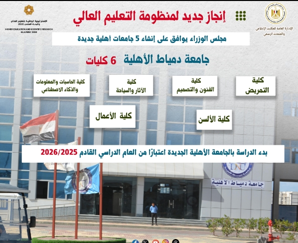 تضم 6 كليات.. بدء الدراسة بجامعة دمياط الأهلية العام المقبل