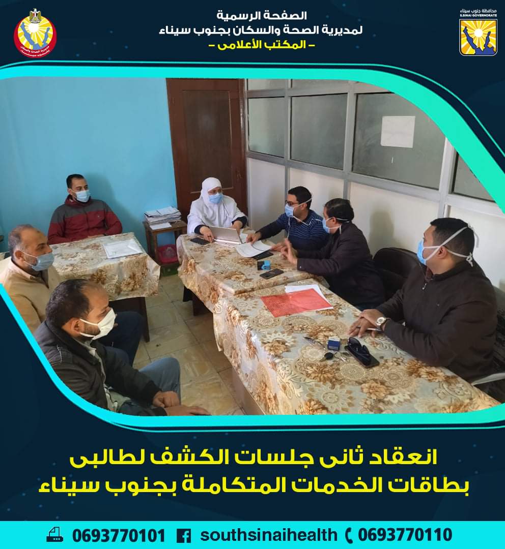 انعقاد ثانى جلسات الكشف الطبى لطالبى بطاقات الخدمات المتكاملة بصحة جنوب سيناء