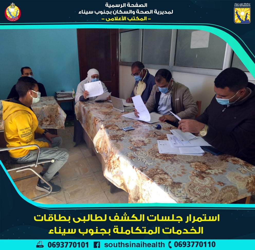 استمرار انعقاد جلسات الكشف الطبى لطالبى بطاقات الخدمات المتكاملة بصحة جنوب سيناء