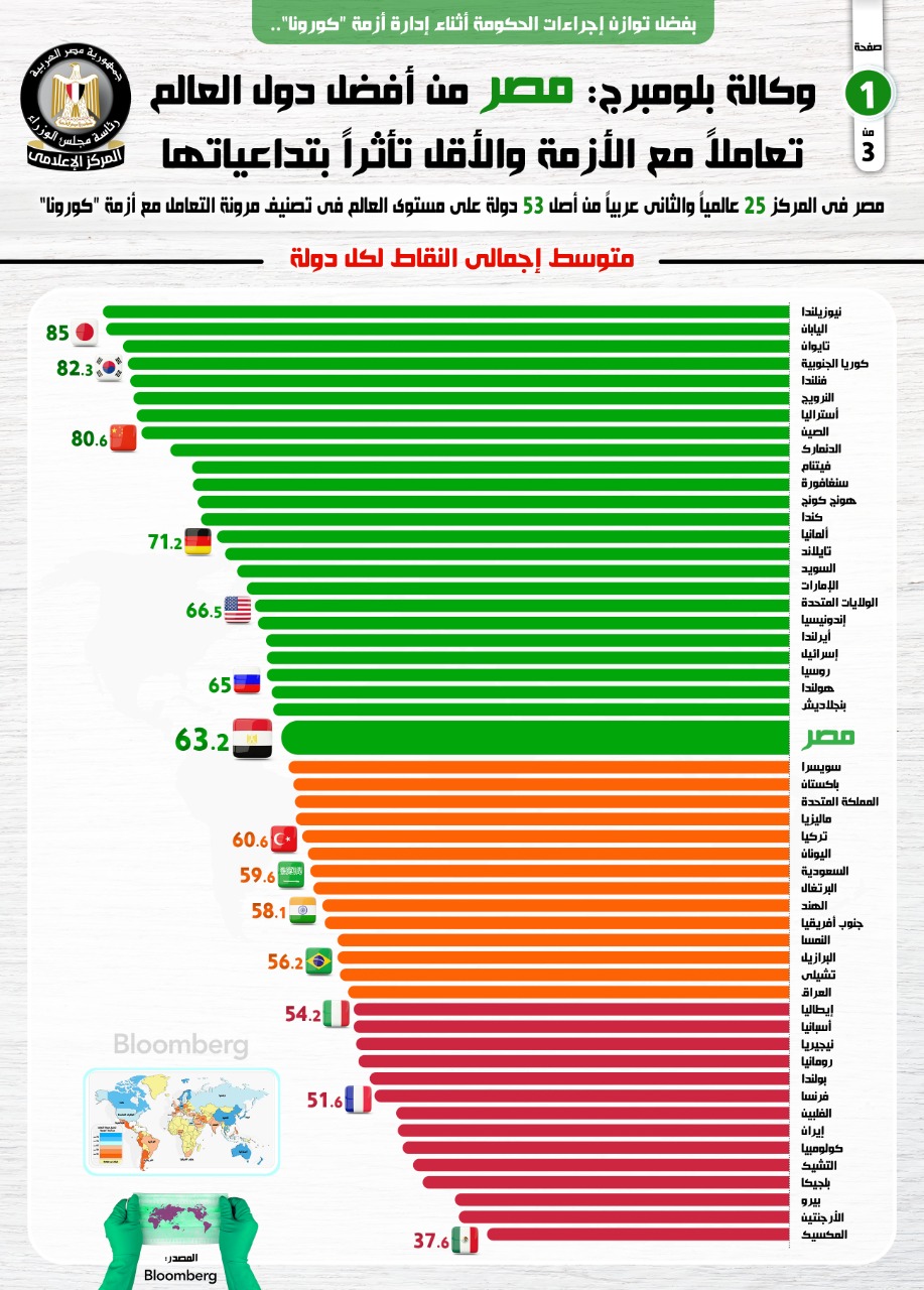 بالإنفوجراف.. وكالة بلومبرج: مصر من أفضل دول العالم تعاملاً مع الأزمة والأقل تأثراً بتداعياتها