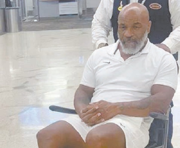 نجم الملاكمة مايك تايسون على كرسي متحرك بعد وعكته الاخيرة