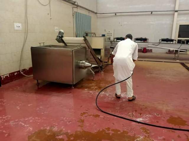 تكثيف أعمال النظافة لمصنع التمور بمركز تطوير الصناعات بسيوة