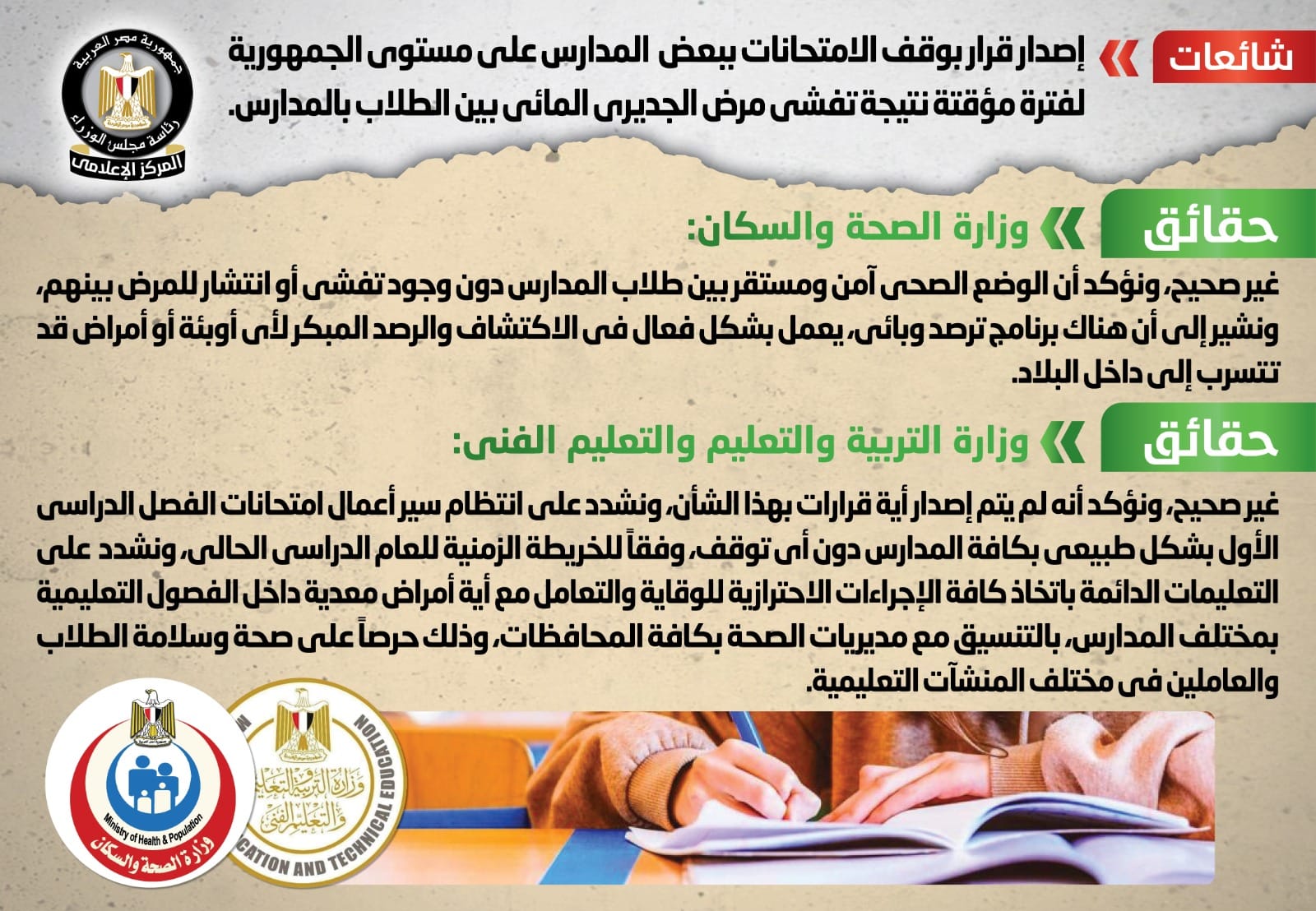 الحكومة تنفى وقف الامتحانات ببعض المدارس نتيجة تفشي الجديري المائي