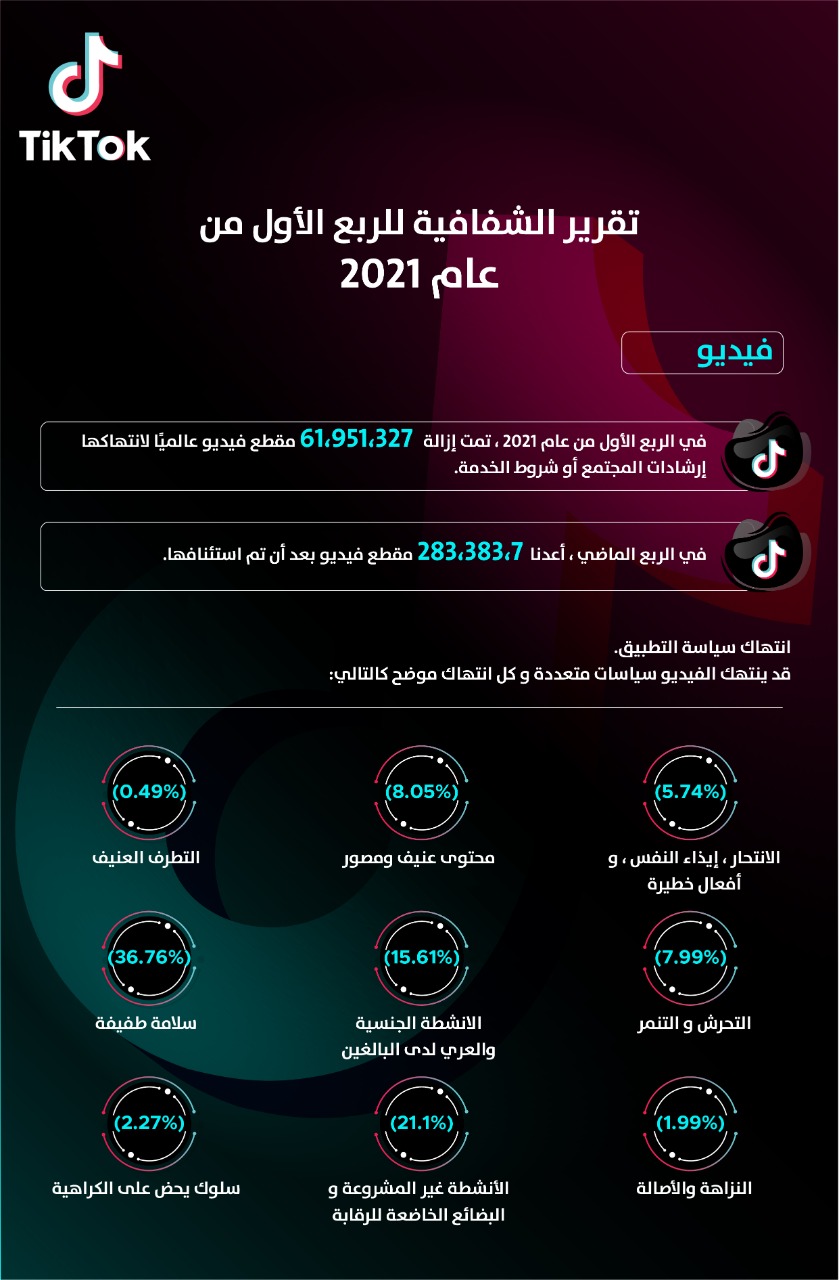 منصة تيك توك تحذف ٦٢ مليون مقطع فديو و١١ مليون حسابا مزيفا ومنتهكا لارشادات المجتمع