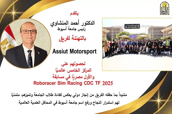 ؤئيس جامعة أسيوط يهنئ فريق أسيوط موتورسبورت بإنجازه العالمى