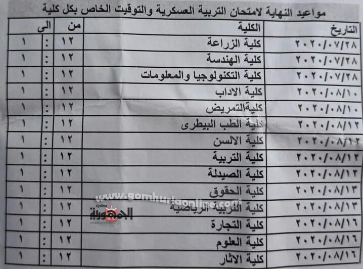 تعرف على جدول الامتحان التحريري لمادة التربية العسكرية بجامعة سوهاج
