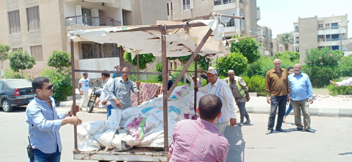 جهاز مدينة العبور يشن حملة إزالة الإشغالات بحي الشباب ..صور