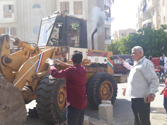 جهاز مدينة العبور يشن حملة إزالة الإشغالات بحي الشباب..صور