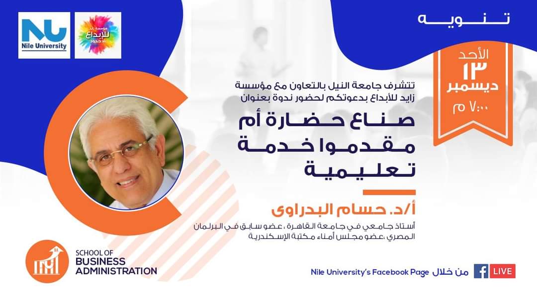 "النيل الأهلية" تستضيف حسام بدراوي للحديث عن دور الجامعات في تقديم الخدمات التعليمية