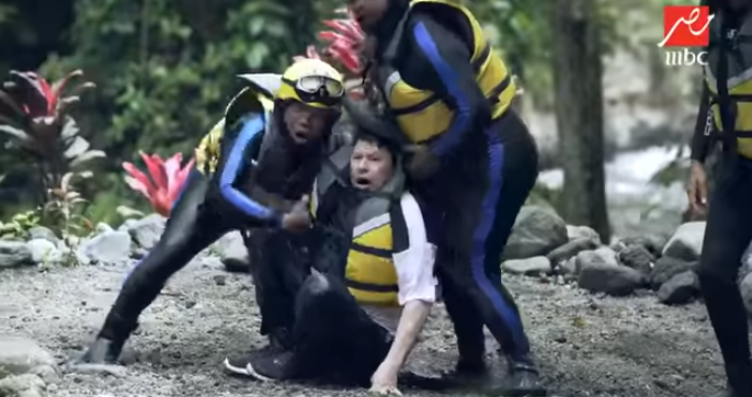الرعب يسيطر على رضا عبد العال بعد ظهور غوريلا' رامز فى الشلال"