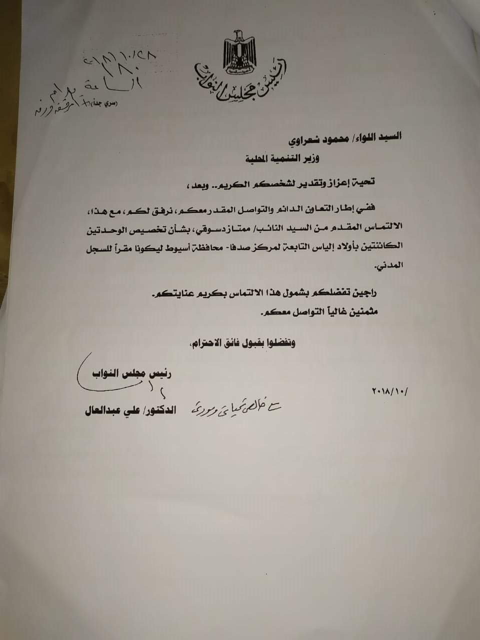 ممتاز دسوقي عضو أسيوط يحصل على موافقة انشاء سجل مدني بقرية اولاد الياس لخدمة الاهالي