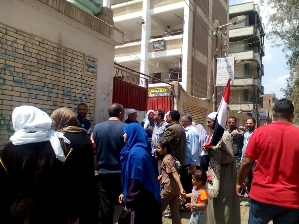 بالأعلام وهتافات تحيا مصر .. أهالى شبرابخوم يشاركون فى الاستفتاء
