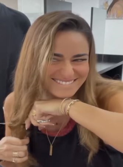 أمينة خليل تقص شعرها داخل إحدى صالونات التجميل