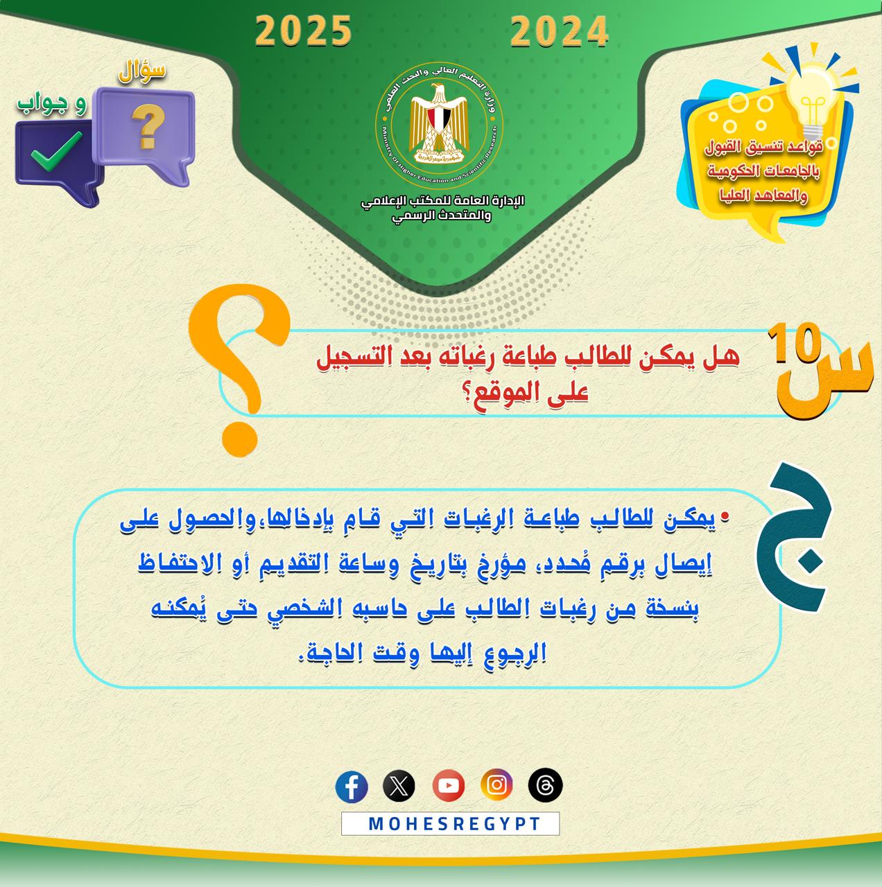 هل يمكن للطالب طباعة رغباته بعد التسجيل على موقع التنسيق ؟ .. التعليم العالي تجيب