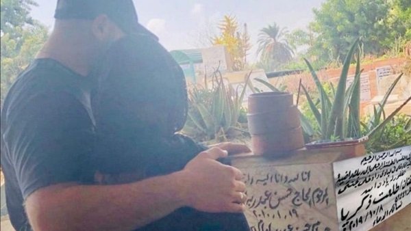 نجل طلعت زكريا يحتفل بعيد ميلاد شقيقته أمام قبر والدهما