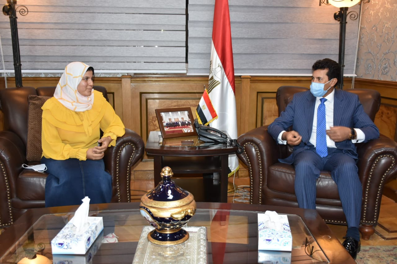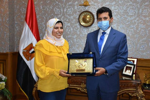 وزير الشباب يُكرم الطالبة آية طه حسين