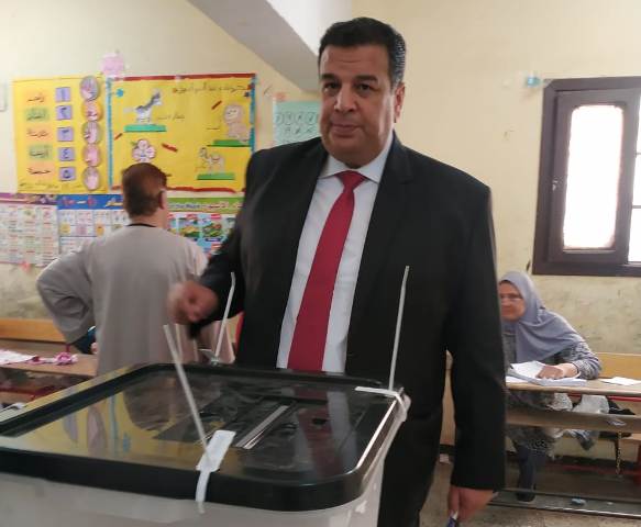 رئيس تحرير الجمهورية يدلي بصوته في لجنة مدرسة طه حسين بالهرم
