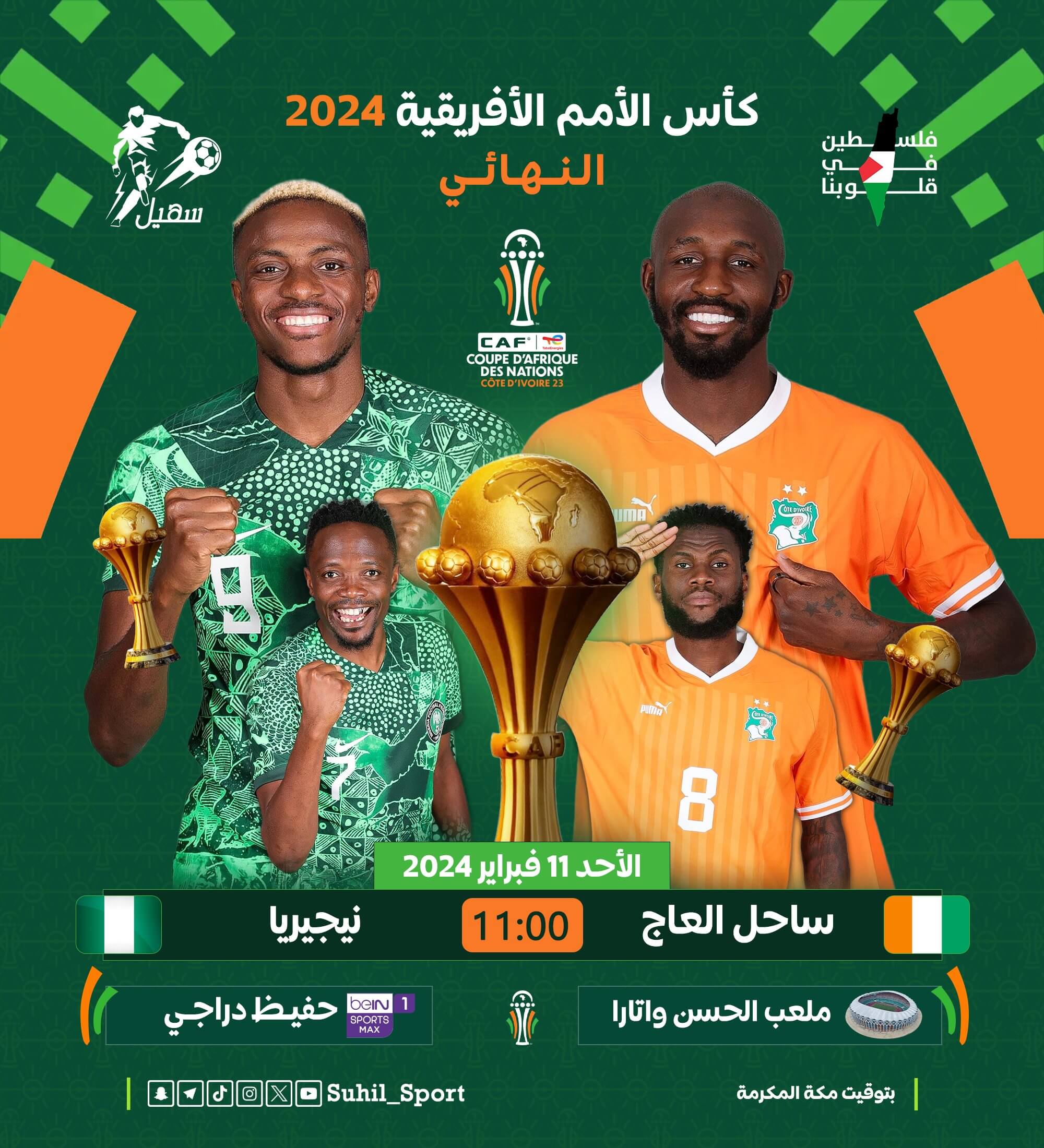 كوت ديفوار ونيجيريا.. قناة مجانية تنقل نهائي كأس الأمم الإفريقية