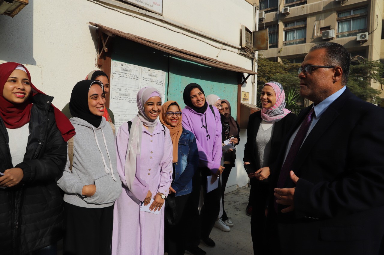 نائب رئيس جامعةعين شمس يتفقد لجنة انتخابات اتحاد طالبات كلية البنات