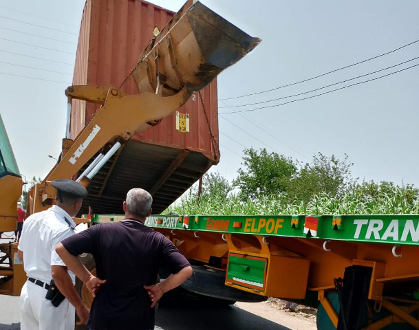 سقوط كونتينر على ملاكى اسفل كوبرى خنيزة بكوم حمادة