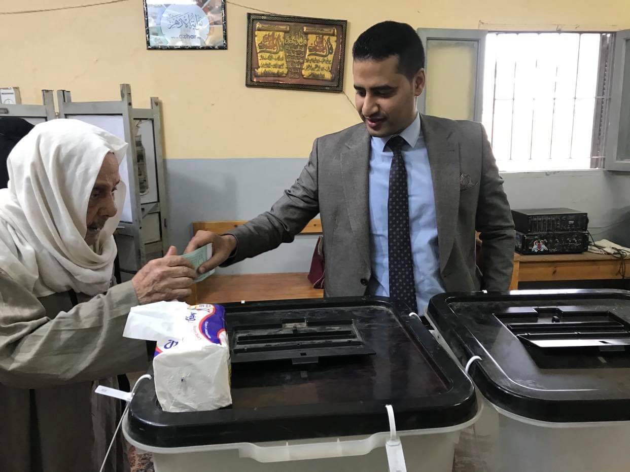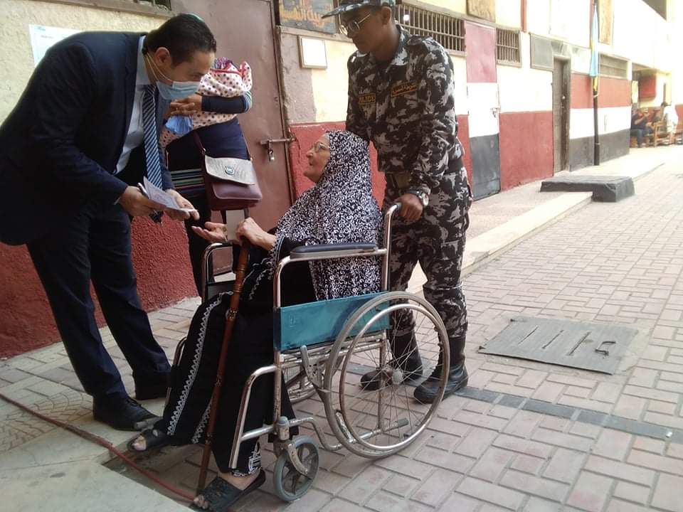 قاضى ينتقل إلى مسن فى العقد الثامن من عمره للإدلاء بصوته فى الانتخابات الرئاسية