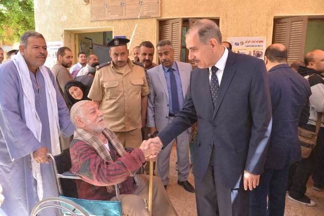 محافظ أسيوط يصطحب عم "ناثان " ذو 83 عاماً على كرسي متحرك للإدلاء بصوته في الاستفتاء